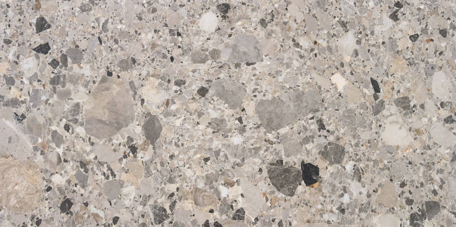 Le carrelage Inlay MAT présente une finition mate ainsi qu'un effet granit "Terrazzo".