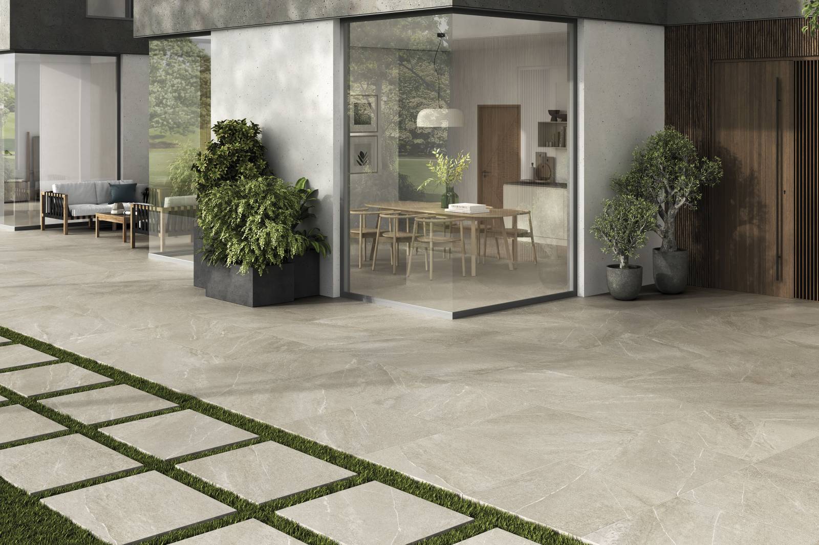 Grâce à sa polyvalence, le carrelage "Sakhir" convient à une variété de projets extérieurs, tels que les terrasses, les patios, les allées et les espaces autour de la piscine. Son épaisseur de 20 mm lui confère une stabilité structurelle supplémentaire, lui permettant d'être utilisé dans des zones à fort trafic.