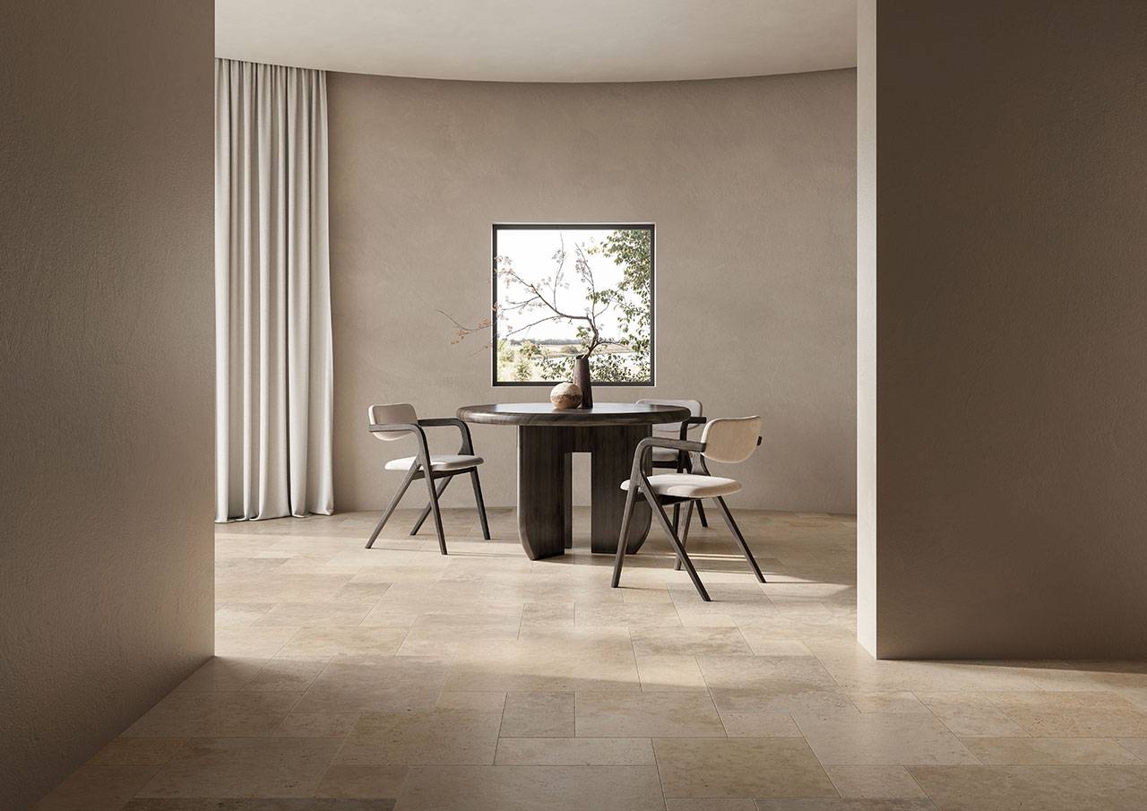 Polyvalence d’utilisation : Le carrelage Martigues effet travertin Marmo Primavera est conçu pour s'adapter aussi bien aux espaces intérieurs qu'aux extérieurs. Il convient à de nombreux environnements : sols de salon, murs de salle de bain, terrasses ou abords de piscine.