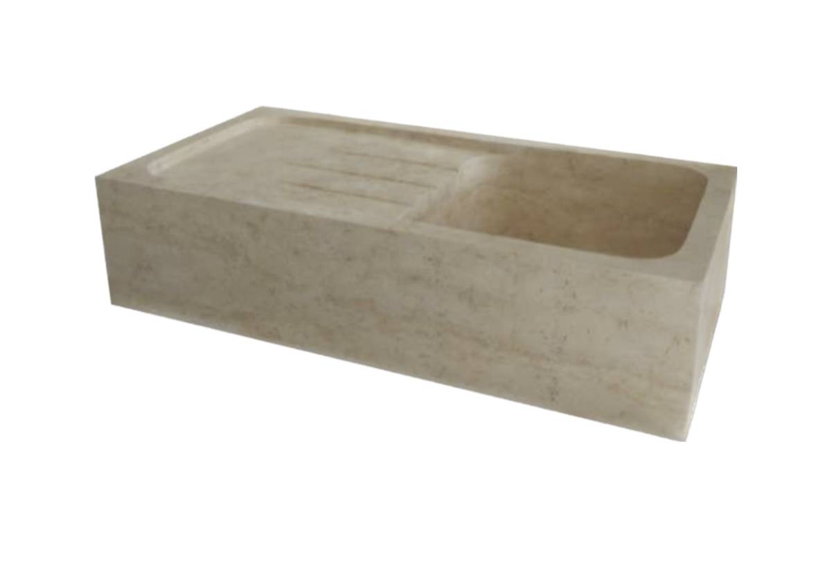 Le travertin, pierre naturelle renommée pour sa robustesse et son charme intemporel, donne à cet évier une allure unique et authentique. Chaque évier en travertin est conçu pour allier beauté naturelle et durabilité, apportant ainsi une touche distinctive à votre espace de cuisine.
