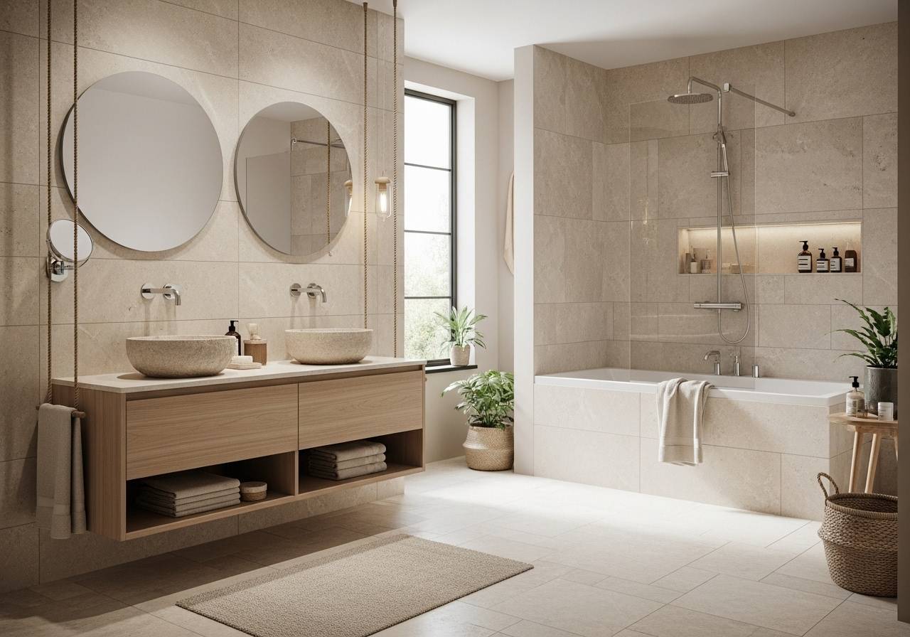 Vous pouvez associer le travertin light avec des meubles de couleurs simples comme le beige, noir mais aussi blanc afin de créer un intérieur minimaliste.