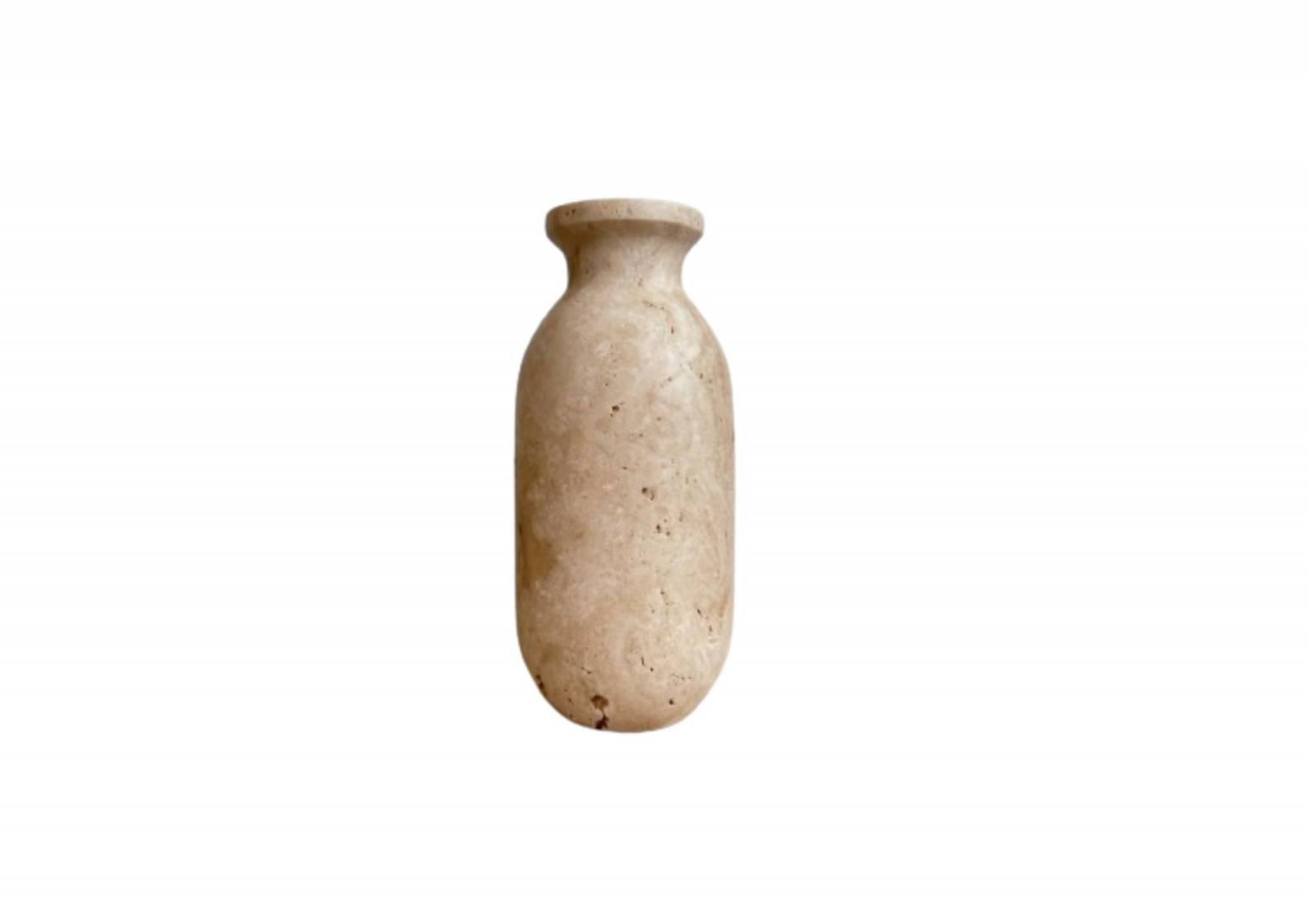 Le vase porte-fleur en travertin est une pièce d'une élégance naturelle, alliant la l'authenticité du travertin à la délicatesse des fleurs. Il devient un mariage artistique entre la force minérale et la grâce florale.